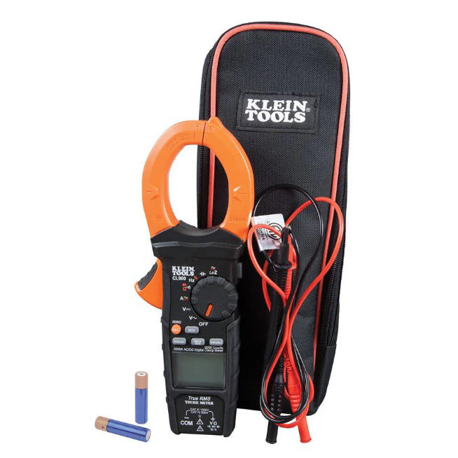 El probador eléctrico CL900 es un multímetro digital de gancho de rango automático con media cuadrática real (TRMS). Mide corriente CA/CD a través de las pinzas y mide voltaje CA/CD, resistencia, continuidad, frecuencia, ciclo de servicio, capacitancia y prueba diodos mediante los cables de prueba. Cuenta con un modo de baja impedancia (LoZ) para identificar y eliminar voltajes fantasmas o erráticos, y tiene un modo dedicado para capturar la corriente de inserción.