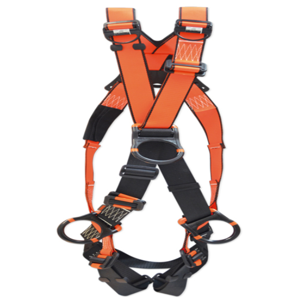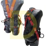 Arnés dieléctrico de 4 puntos de anclaje con argollas tipo “D”, uno en la espalda para detención de caídas, 2 laterales en la cintura para posicionamiento a un punto fijo y una frontal para rescate, ascenso y descenso controlado; resistencia mínima dieléctrica de 9 kB.