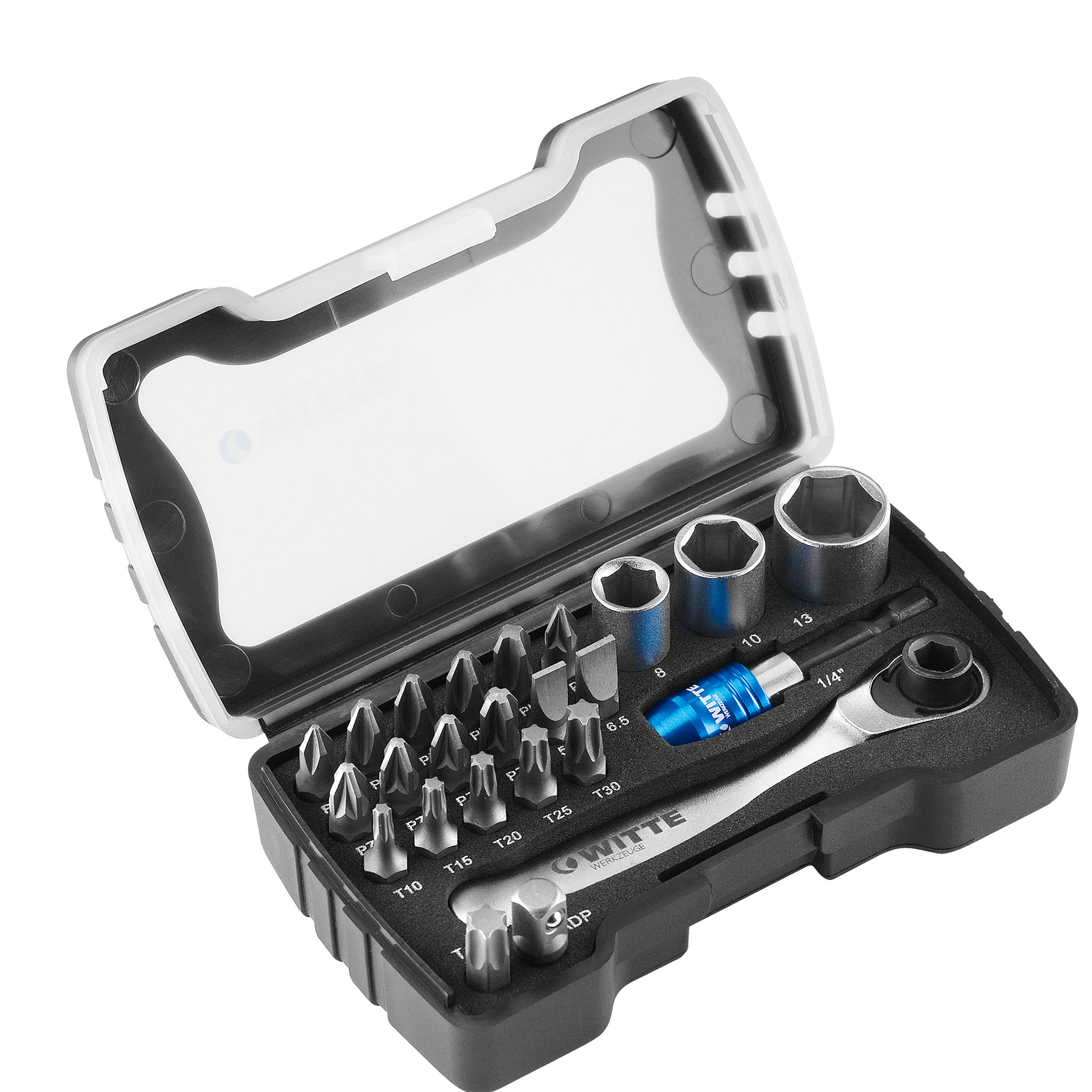 18 pzas de puntas industriales de 1/4″ x 25 mm (Phillips, Pozidriv, Torx, Planos)