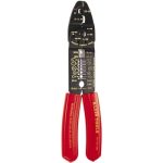 La herramienta multipropósito Klein de 8-1 / 2 pulgadas tiene un acabado de óxido negro para protección contra el óxido y contiene cuchillas de corte de acero que cortan cables de aluminio o cobre. La herramienta tiene orificios de desmontaje en forma de diamante que quitan la cubierta exterior del cable y también elimina el aislamiento dieléctrico interno sin ningún riesgo. Los mangos de agarre de cojín ofrecen buen agarre y comodidad, y se proporcionan tres matrices para conectores tipo F y de anillo.