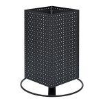 Para llenar con un contenido individual directamente en el lugar. Para la promoción y presentación amplia del producto. Completo, con patas, 5 paneles perforados, repisa y cabecera iluminada transparente. Se puede equipar con displays autoservicio, soportes para alicates y/o expositores de venta. Con cable y toma de corriente de 230 V. Material: chapa/perfil tubular de acero, recubierto de pintura pulverizada, color plata.