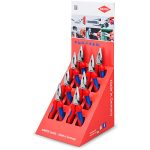 Equipado con 8 alicates, distintas versiones / variantes. Expositor realizado en cartonaje de alta calidad con impresión de alto brillo. Tamaño pequeño, mínimo espacio requerido en el punto de venta. Dimensiones (A x A x P): 170 x 200 x 400 mm.