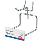 Para el montaje en expositores murales. Distintas versiones y dimensiones, véase la tabla. Longitud 200 mm. Para herramientas pesadas como llaves para tubos, etc.. Con sistema pivotante para fácil amarre y liberación.