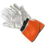 Protector de guante de bajo voltaje ILP de Salisbury, Tamaño 11 / 11.5, Cuero de piel de cabra de grano superior, Crema, Puño de contorno, Puño verde / naranja, Correa de tiro, 10 en longitud