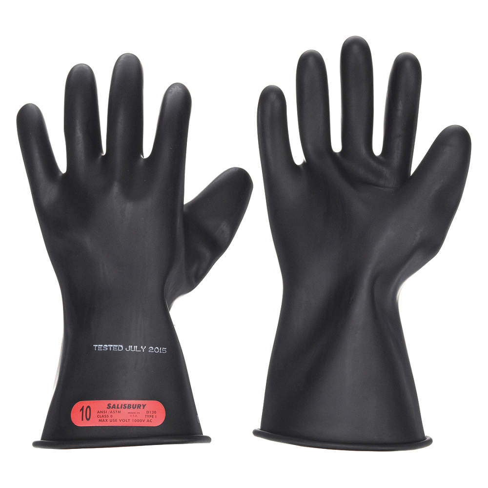 Estos guantes aislantes de goma protegen contra descargas eléctricas y deben probarse cada 6 meses de acuerdo con la norma ASTM F496, «Especificación estándar para el cuidado en servicio de guantes y mangas aislantes» en una instalación de prueba de equipos de seguridad autorizada. Caucho natural tipo I. Cumple con las normas ASTM D120, IEC EN60903 y NFPA 70E.