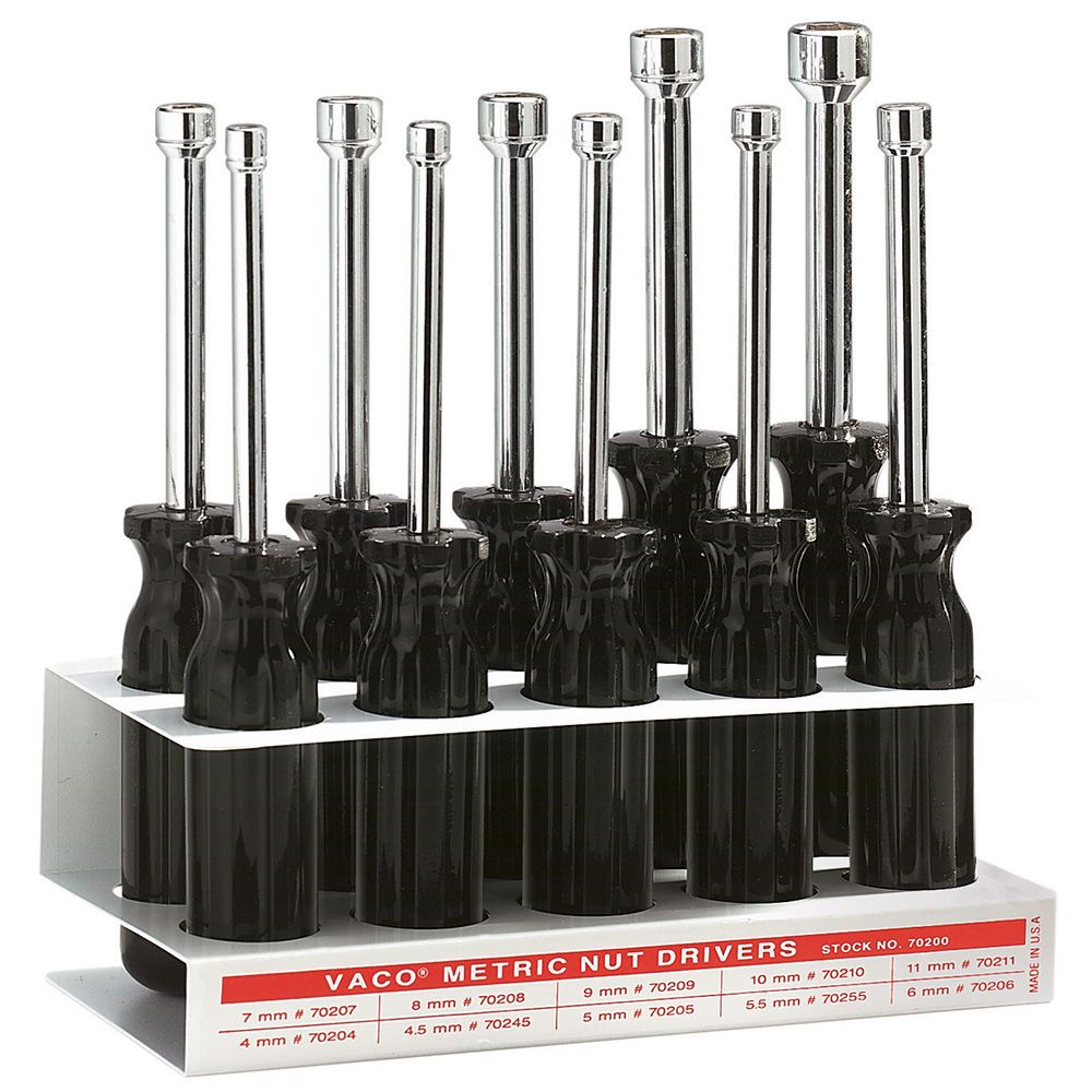 Las etiquetas de identificación y el código de colores de los destornilladores de tuerca facilitan la selección de tamaños individuales