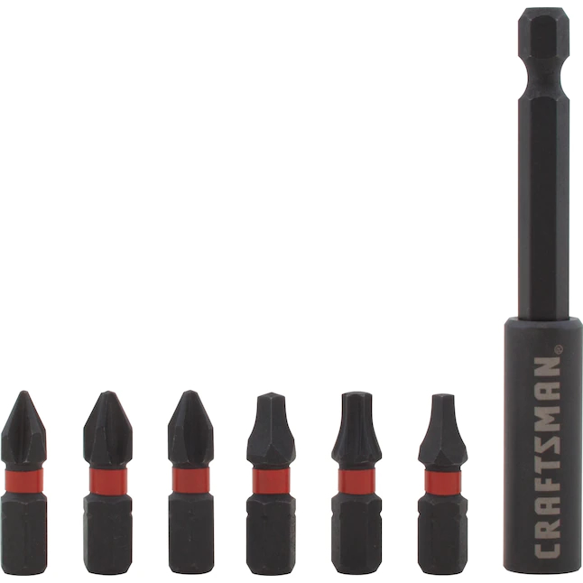 Incluye (1) soporte magnético para puntas de destornillador de 3 pulgadas; (1) punta de broca Phillips n.º 1 de 1 pulgada; (2) punta de broca Phillips n.º 2 de 1 pulgada; (1) punta de broca cuadrada/Robertson n.º 1 de 1 pulgada; (1) punta de broca cuadrada/Robertson n.º 2 de 1 pulgada; (1) punta torx de 25 bits de 1 pulgada