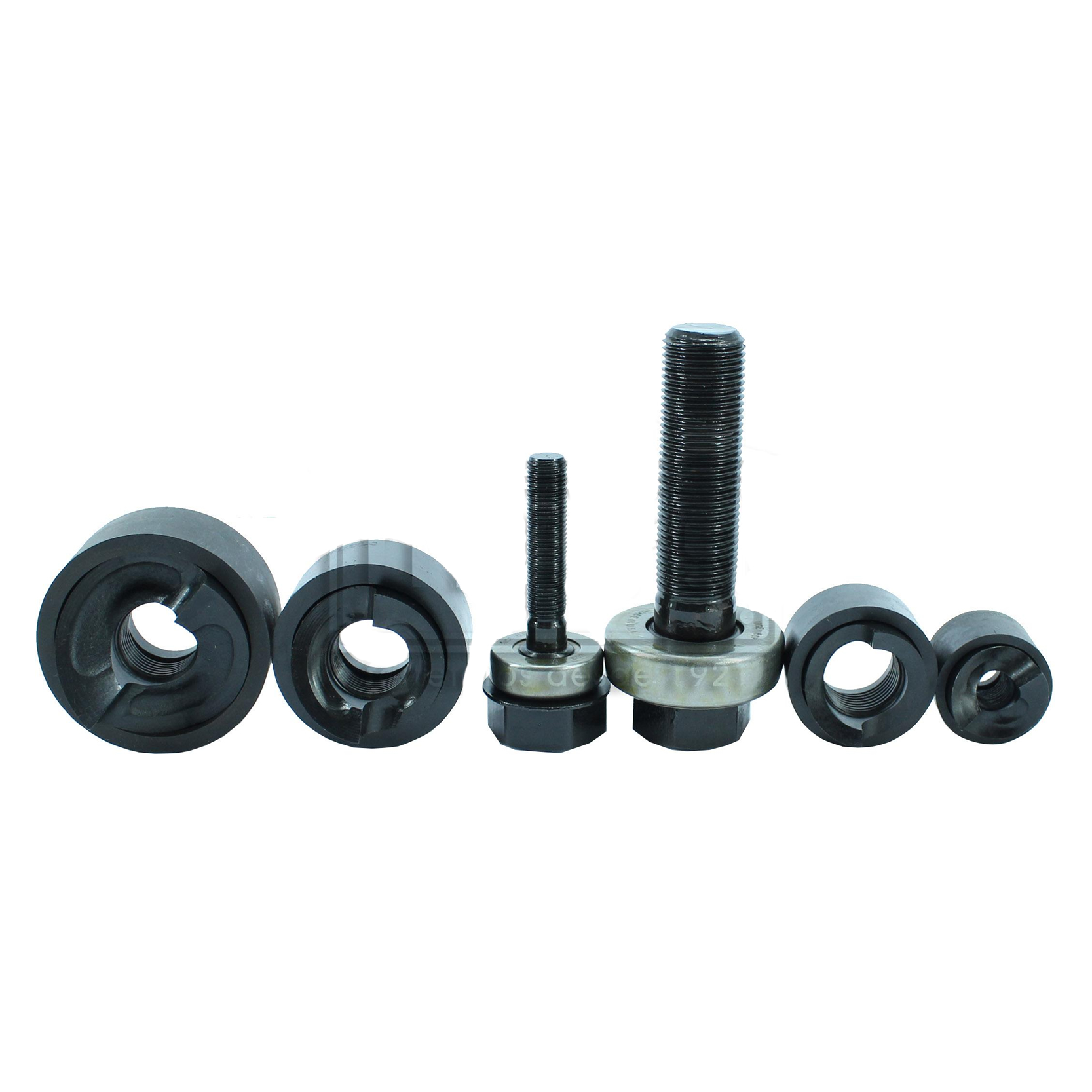 Juego de 4 Sacabocados KT de .50″ a 1.25″ en estuche, El juego incluye:Punzones,Matrices tornillos para conduit de ½ ,3/4,1, 1-1/4 Capacidad de corte de acero suave calibre 10(también corta aluminio, fibra de vidrio y plástico) Divide los bocados para facilitar su remoción Perfora agujeros de manera limpia y precisa El juego incluye punzones y matrices de 4 tamaños distintos, dos tornillos con rodamientos