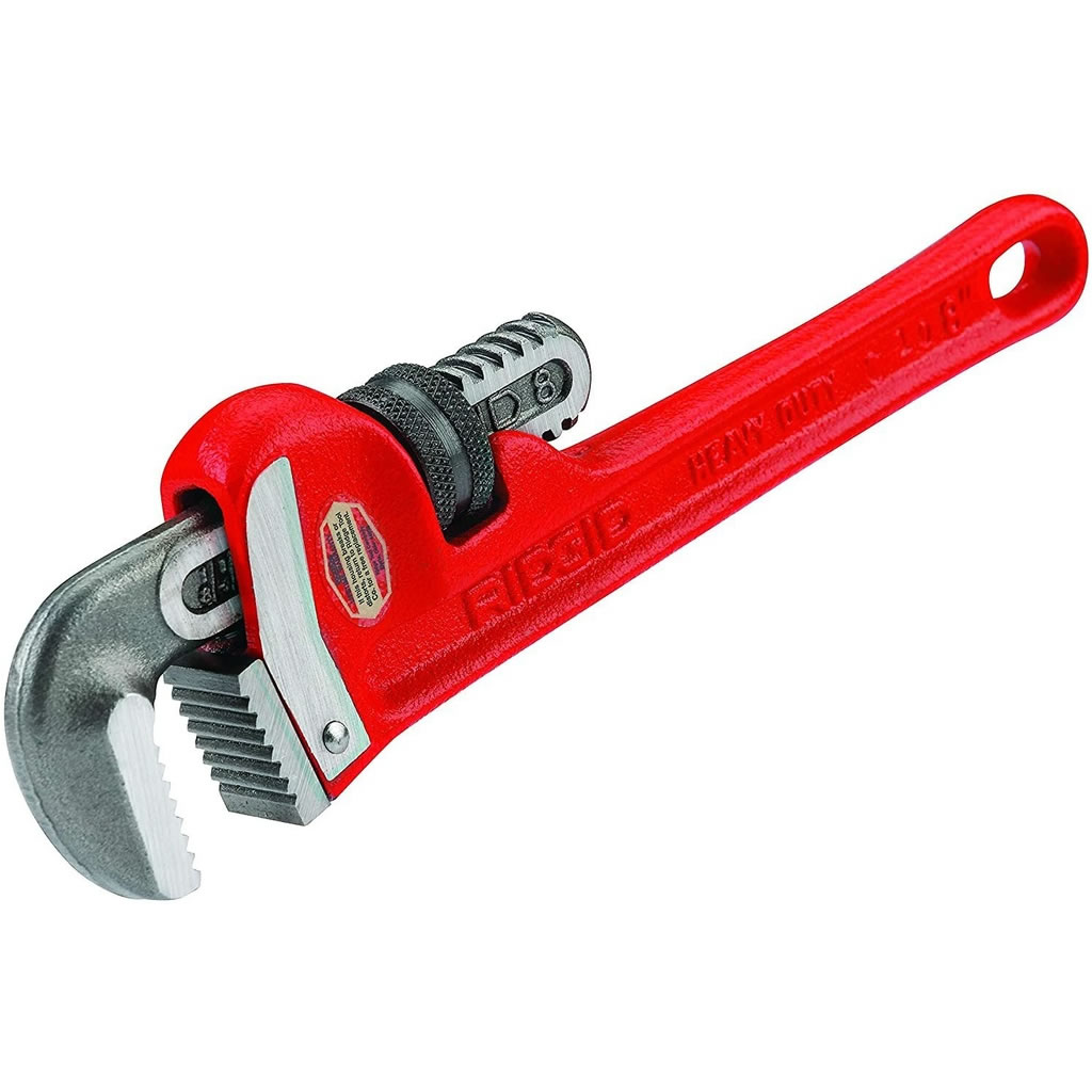 Las llaves rectas para tubos tienen un cuerpo resistente de hierro fundido y un mango de tipo viga H con mordaza de gancho forjada.