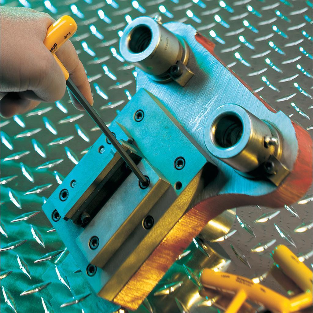 Ventajas: •Tienen el mango soldado para obtener un máximo torque y fuerza de apriete. •Mango ahulado para un mayor confort. •Punta tipo bola para ángulos de 25°