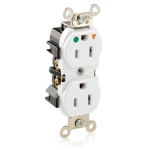 Receptáculo dúplex/tomacorriente con conexión a tierra aislada, grado de especificación industrial para trabajos pesados, cara lisa, 15 A, 125 V, cableado posterior o lateral, NEMA 5-15 R, 2 polos, 3 hilos, puesta a tierra automática – Blanco